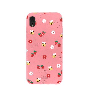 Bubblegum Pink Bees n Berries iPhone XR Case
