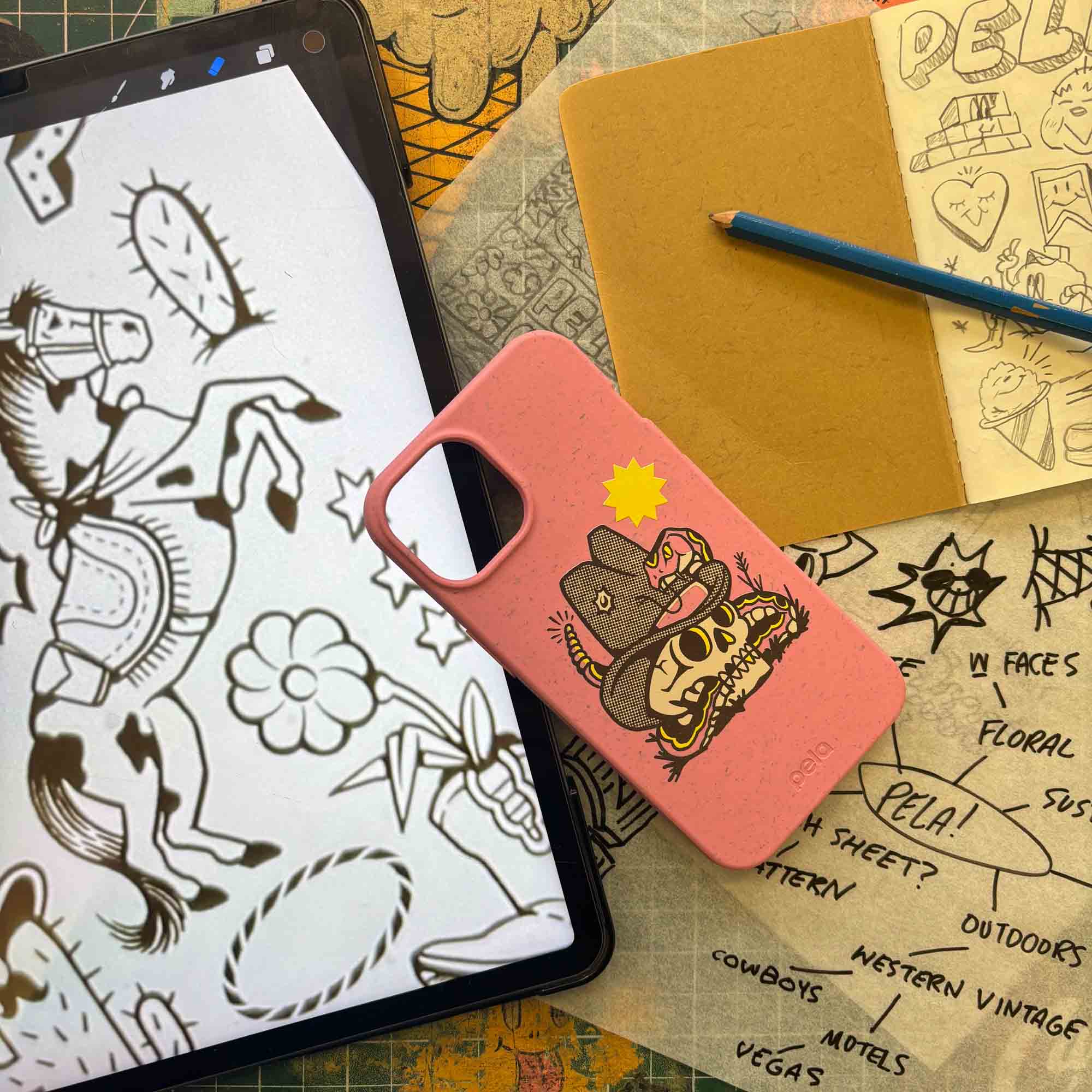 Embrace the wild west with the Snakebite Phone Case from the exclusive x Cam Miller Artist Series Collection! Featuring a bold and edgy design of a cowboy hat-wearing skull entangled with a fierce rattlesnake, this case brings a punch of rebellious charm to your everyday adventures. The vibrant bubblegum pink background adds a playful contrast to the gritty artwork, making it a standout piece for those who dare to be different. Perfect for thrill-seekers and art lovers alike, the Snakebite case is your ultimate accessory for a fearless and stylish look. Ride into the sunset with a touch of danger and a whole lot of attitude!