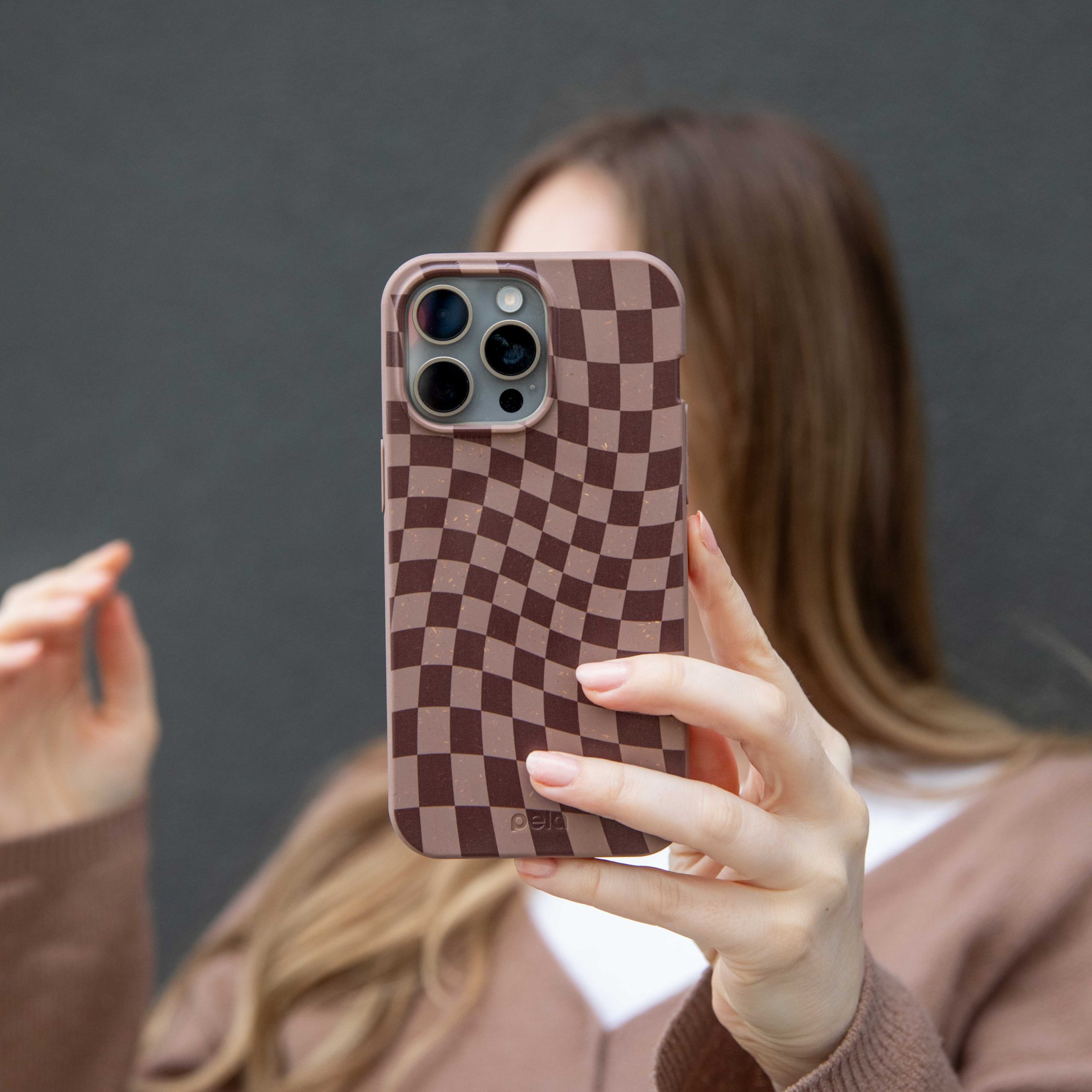 Chocolate Brown Cafe Check iPhone 14 Case